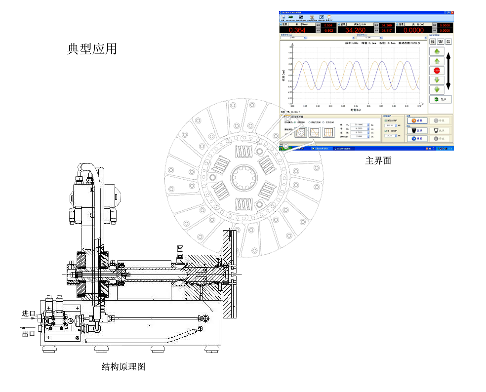 本试验台既可用于检测离合器从动盘总成的功能特性测定,即在扭矩控制下,完成扭矩-角度的关系曲线;又可用来进行扭转耐久性试验,考核被试件在一定温度环境中,在交变扭矩作用下的疲劳寿命是否满足相关试验标准的规定,验证被试件在耐久试验后的性能参数的变化量是否符合相关标准的规定。