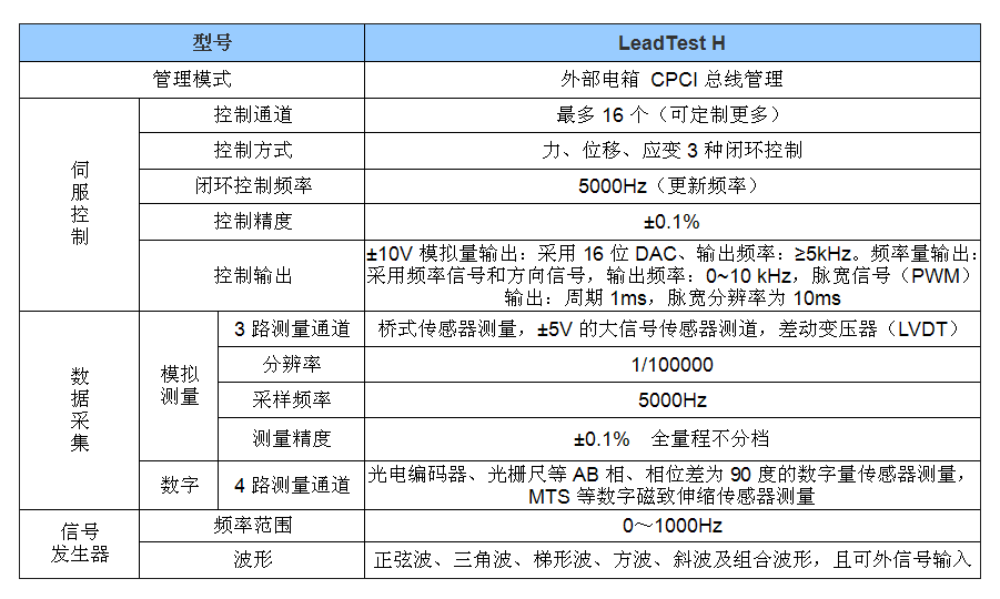 LeadTestH控制器针对各种测试应用程序为用户提供全面的测试解决方案,可在相应的各个领域提供先进技术和专业技能,帮助用户准确测试、设计产品,在动态测试领域,得到了广泛应用。