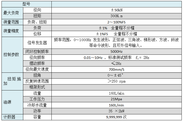 该试验台由径向动态加载系统、轴向扭转往复加载系统、台架、控制系统、计算机软件系统、工装附具等主要部分构成。