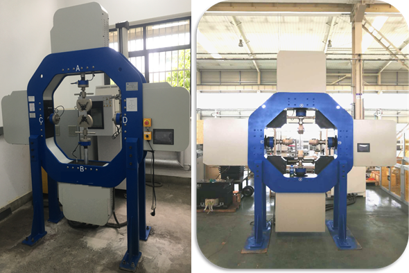 该系列双轴四作动器机电伺服试验机主要用于复合材料的双向静态拉伸或压缩试验,系统具有力,位移两种控制方式。该机适合应用于各向异性材料的静态力试验。同时还具备通用电子控制伺服试验机的全部功能。
